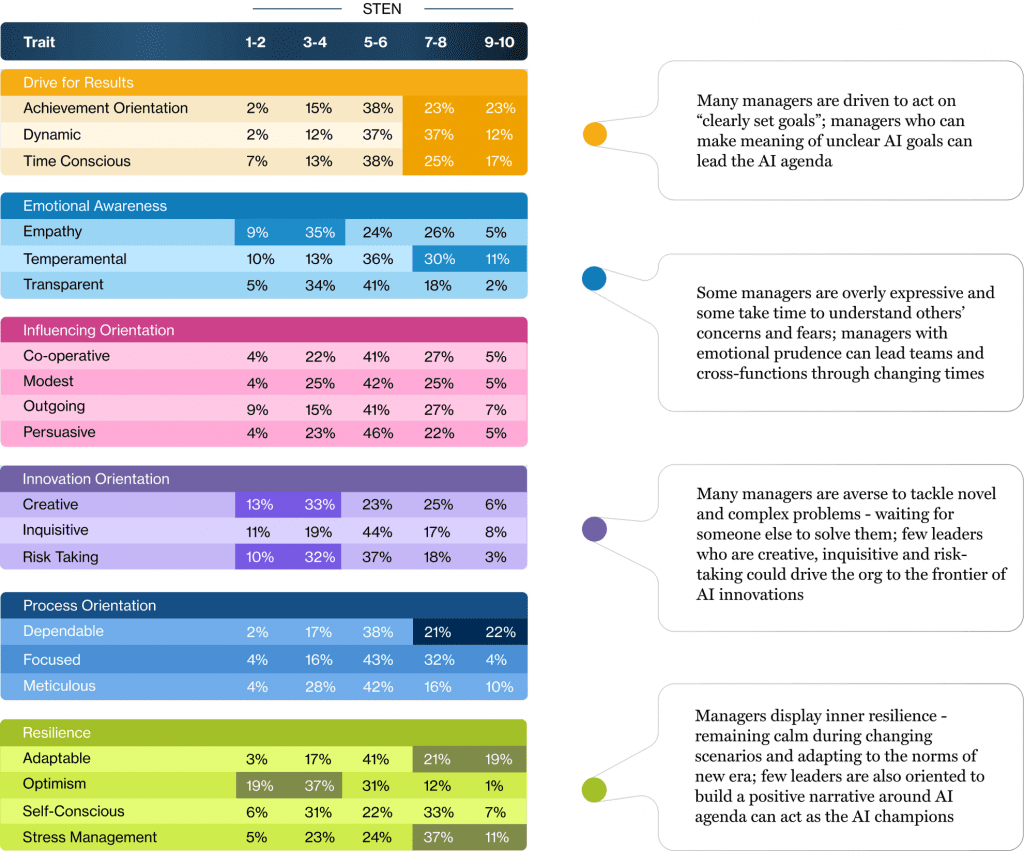 We reviewed personality data of managers from 15 BSE100 organisations to review broader readiness for driving the AI agenda.